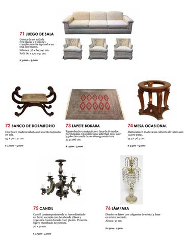 71 Juego de Sala Consta de un sofá de tres plazas y 3 sillones completamente tapizados en tela con brazos. Sillones: 78 x 80 x 90 cm. Sofá: 80 x 270 x 92 cm. $ 3,000 - 5,000
