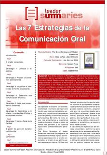 Escrito por los autores Brad McRae y David Brooks donde nos mencionan acerca de "las 7 estrategias de la comunicación oral" donde la capacidad de exponer con claridad, credibilidad y confianza es importante no solo para nuestra vida personal sino para nuestro trabajo a la hora de presentarnos, el objetivo de este libro es que sus lectores comprendan y dominen el uso de las siete estrategias de grandes oradores llevándolas al mas alto nivel.