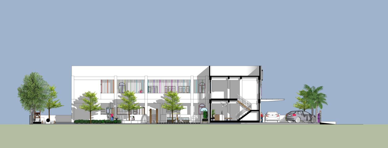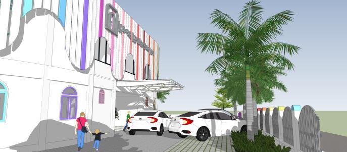 Pada bagian depan, diberi lubang untuk membuat area entranceyang terbuka yang juga sebagai tempat dropoff outdoor.