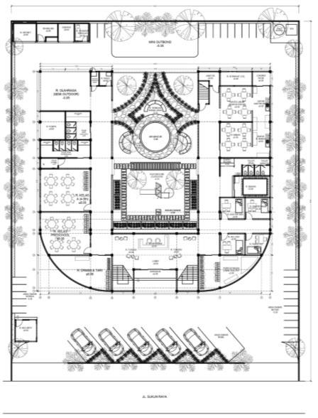 Masa diletakkan ditengah bangunan bertujuan untuk peletakkan vegetasi untuk merespon analisis site, ruang di tepi bangunan berguna untuk akses & sirkulasi pemadam kebakaran apabila terjadi kebakaran