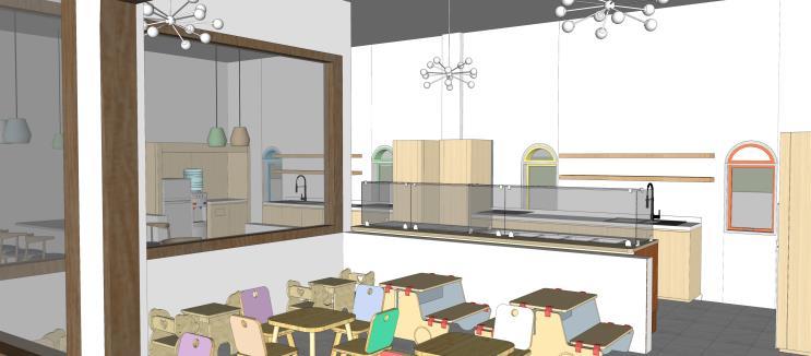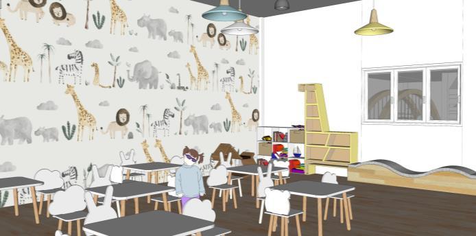 Prinsip “Bermain Sambil Belajar” akan diterapkan pada perbedaan warna di tiap ruang agar anak dapat sambil menghafal warna serta ruang yang ditempatinya & bentuk-bentuk lengkung yang dinamis