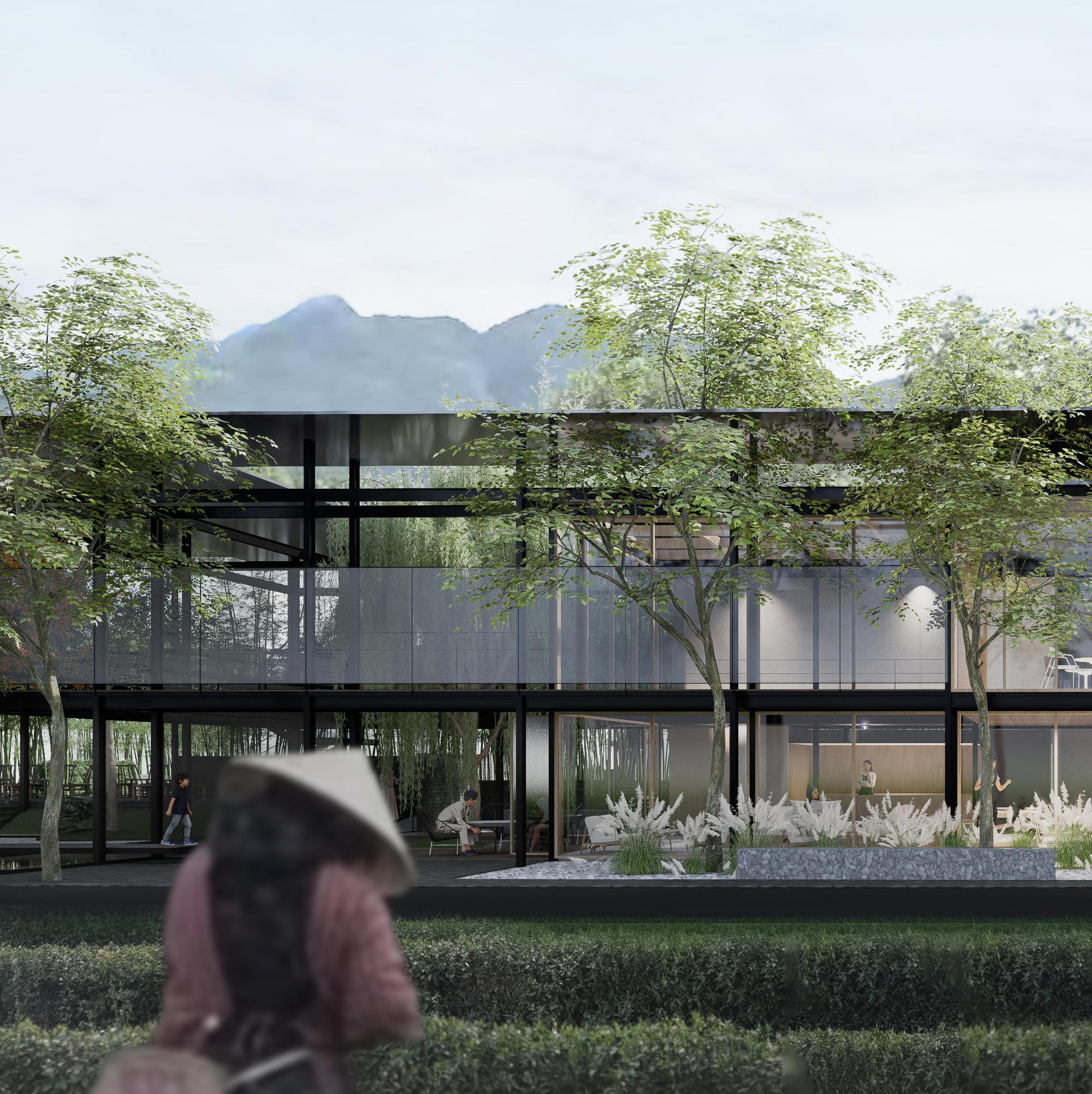 The proposal emphasizes the site's natural features, minimizing architectural impact to enhance continuity with the environment. The visitor center, facing the tea gardens and mountains, uses open, transparent spaces to blur the lines between indoors and outdoors, creating a welcoming public area that connects seamlessly with nature.