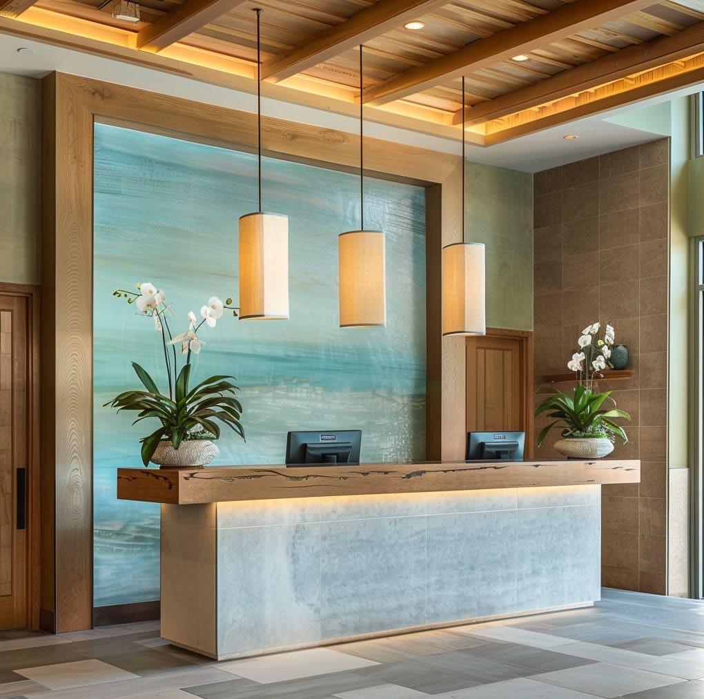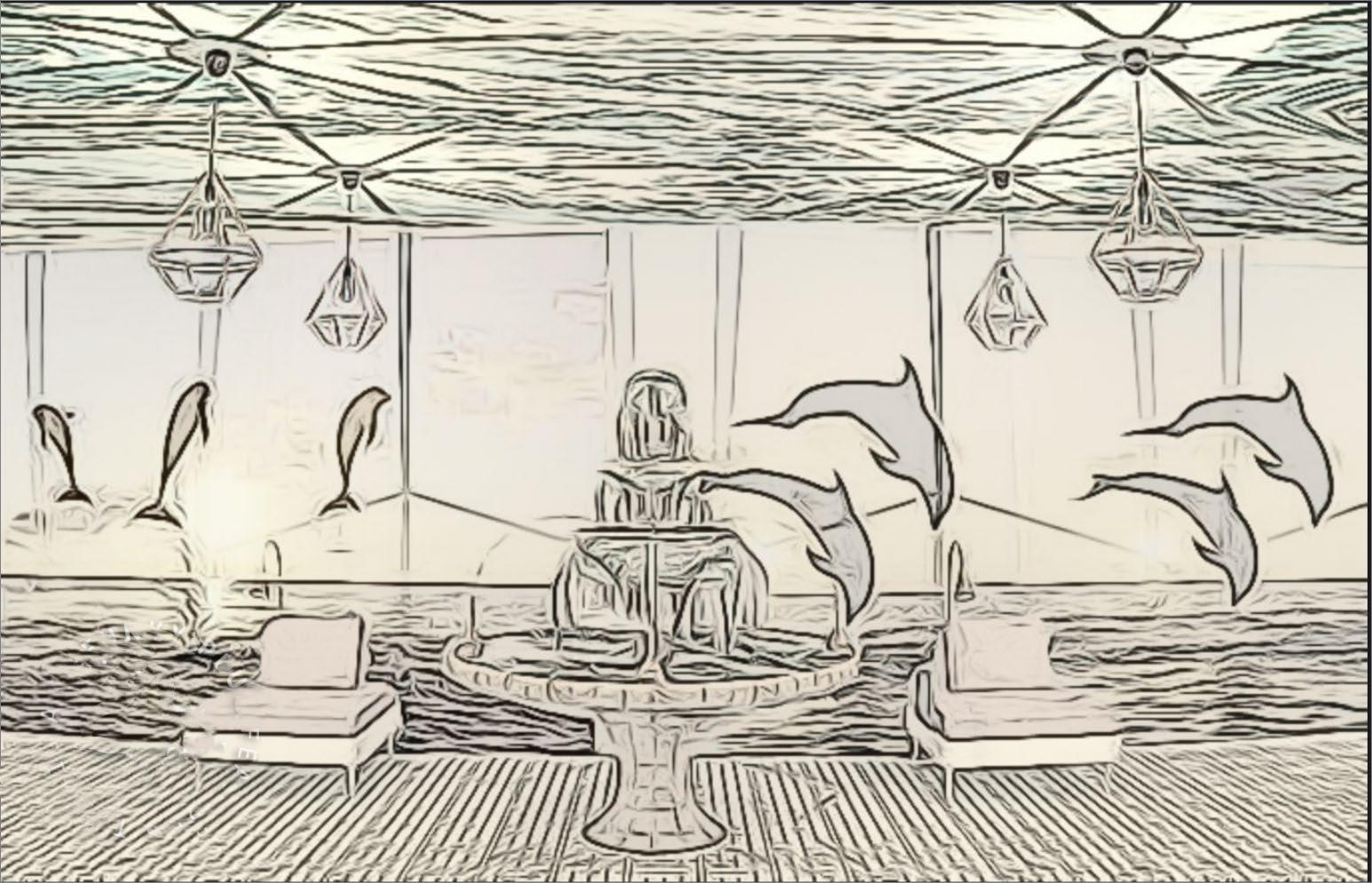 Classical Elegance. Since the hotel sits on the beachfront, an Ocean theme will be heavily represented. My concept stays true to the historic detail of this hotel. The color palette will be in the same family as the previous look, but with a softer, muted tone. Classic black, white and gray will be featured, along with soft blues and greens as the hotel sits on the beachfront. Bold, modern elements will be introduced for visual interest and to create contrast, while using the same color palette. Texture and movement will be shown in the patterns of the materials. USE THE OCEAN AS INSPIRATION!