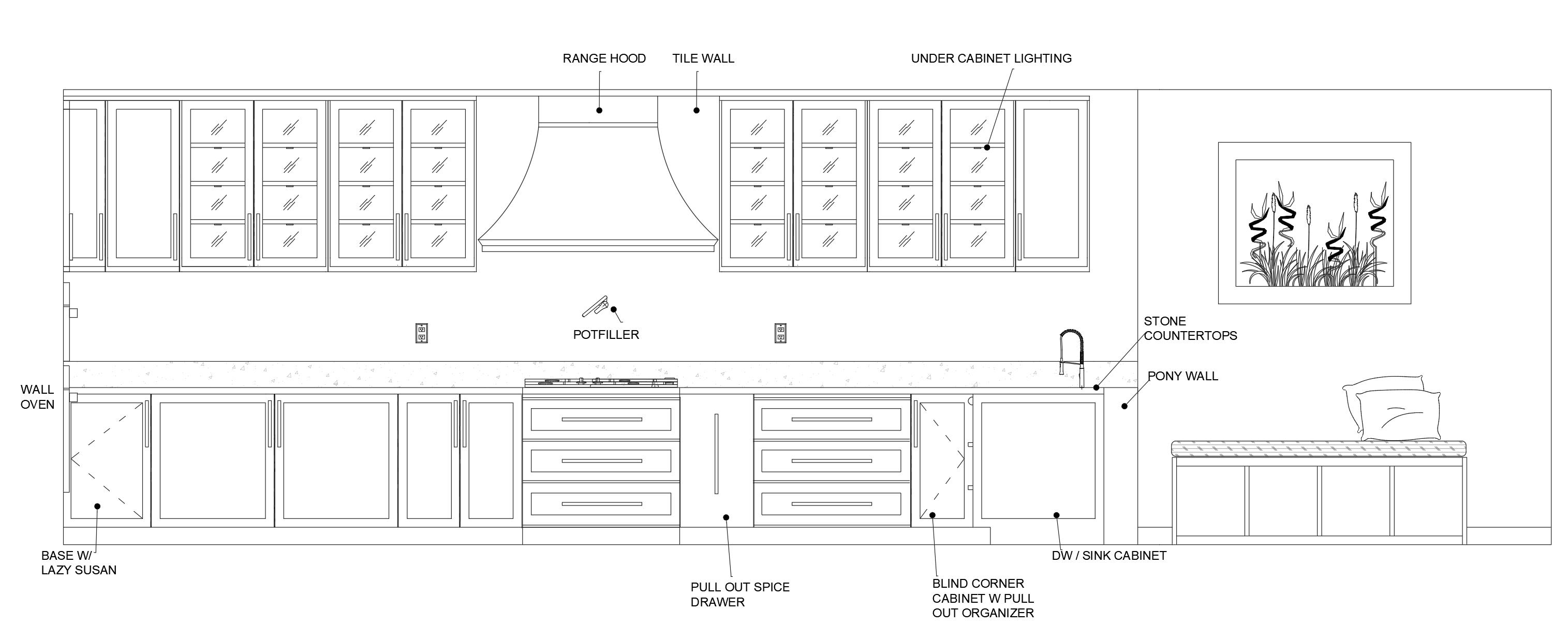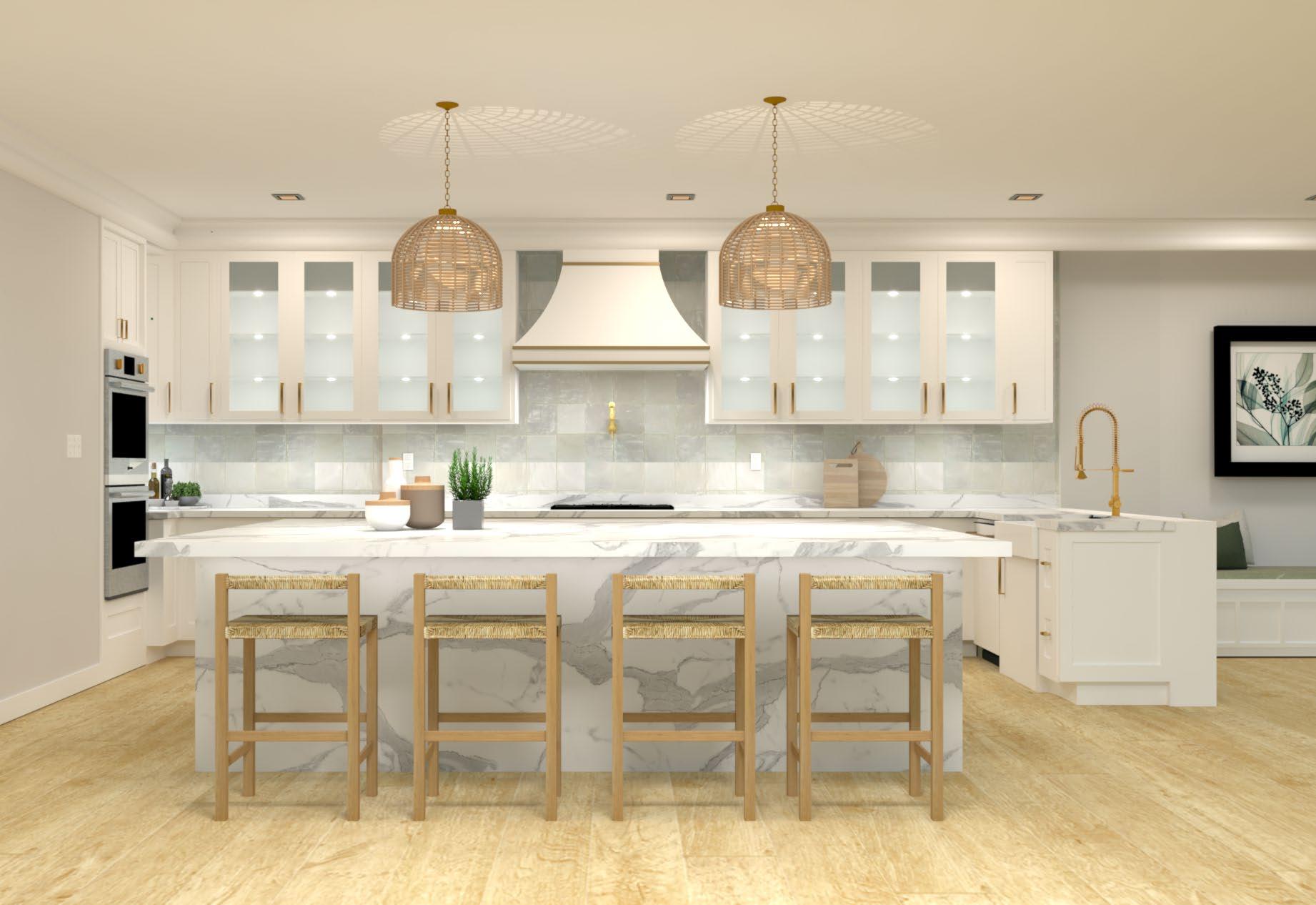 KEY FOCUS - KITCHEN: Add a focal point, increase storage & size of island, incorporate better lighting. Keep existing sink location.
