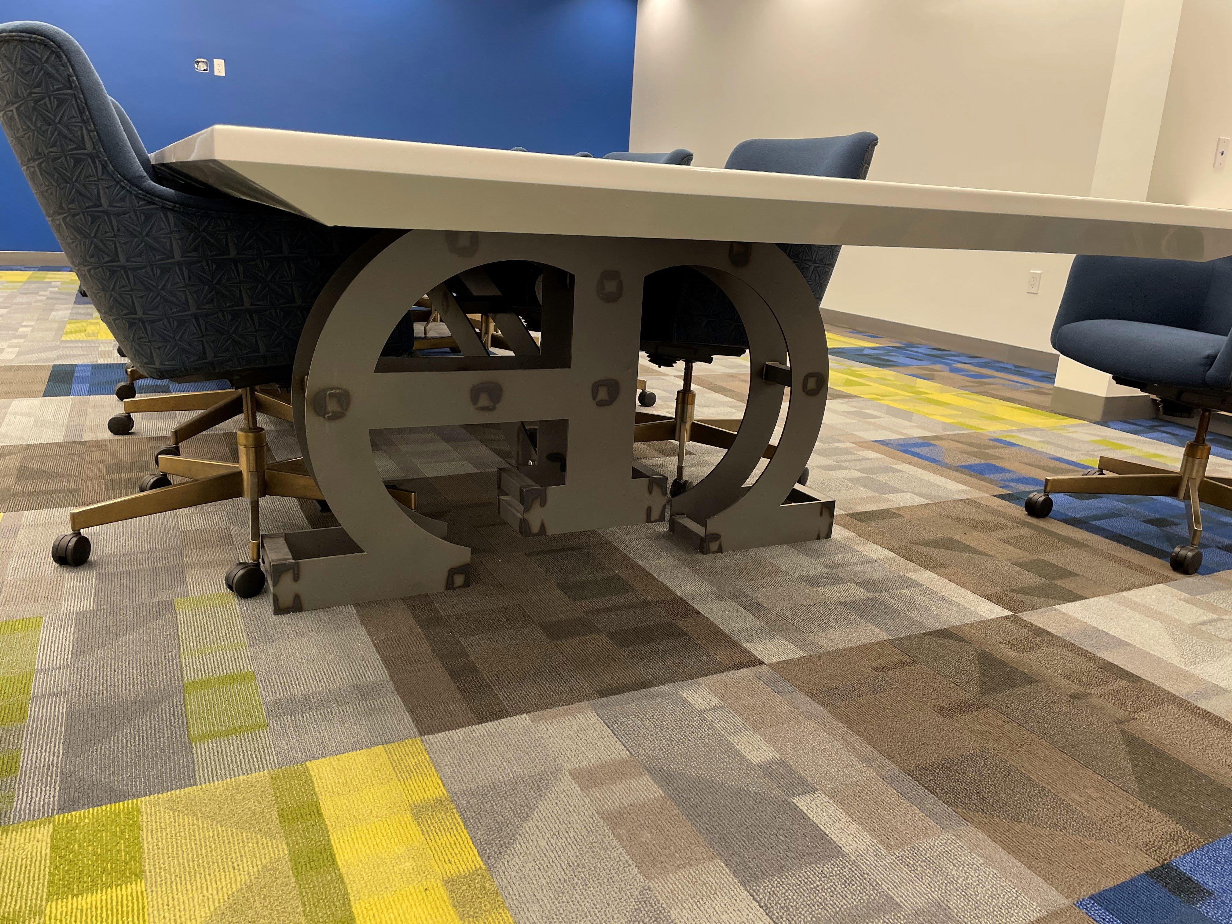 Executive team wanted to revive the environment, brighten the work areas and increase office morale. A variety of colors were chosen to differentiate between departments. Corporate logo color as well as company appropriate color schemes were chosen as the color palette. Company has a 140-year history so vintage logo accents as well as historical wall were part of the new design. Incorporate their pretzel logo into both custom designed reception desk and main conference room table.
