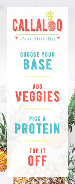 Callaloo now features vibrant dishes inspired by Puerto Rico, Cuba, and Haiti, expanding beyond Jamaican flavors. New favorites like Carne Fritas, Mojo Chicken, and Jamaican Jerk Chicken bring a flavorful island experience to every café.