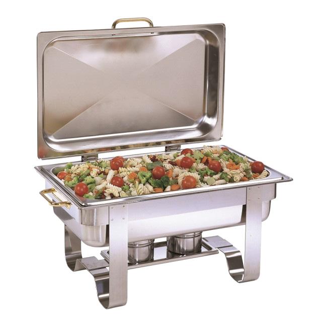 8 qt., hinged lid, includes: food pan, water pan, and fuel holders