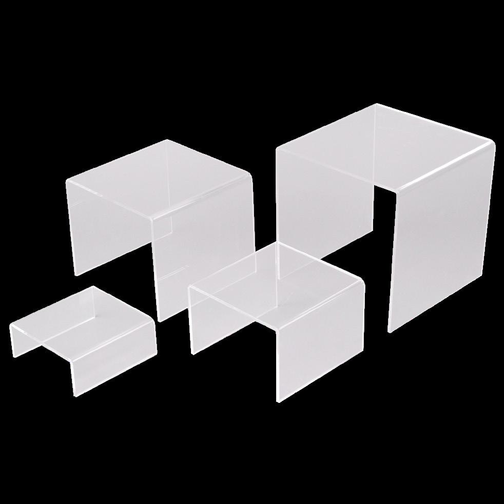 Acrylic boxes can be used alone or with 3-Tier Stand: Item #1067834.