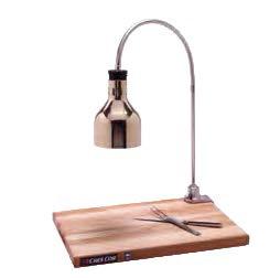 8‐1/4"W x 6"D x 26‐3/4"H, Carving Station, countertop, (1) 250 watt lamp, portable infra red warmer, flexible arm tension, on-off switch, maple cutting board, polished nickel hood, NSF.