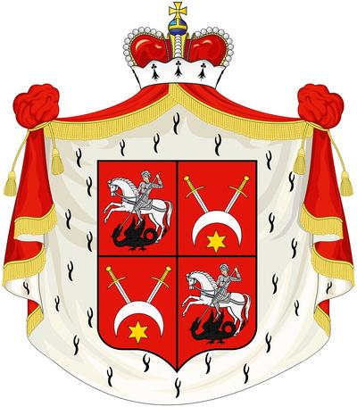 The painted armorial is a creation with elements of the British royal crest in conjunction with the German motto Treu und Fest - 'faithful and firm'.