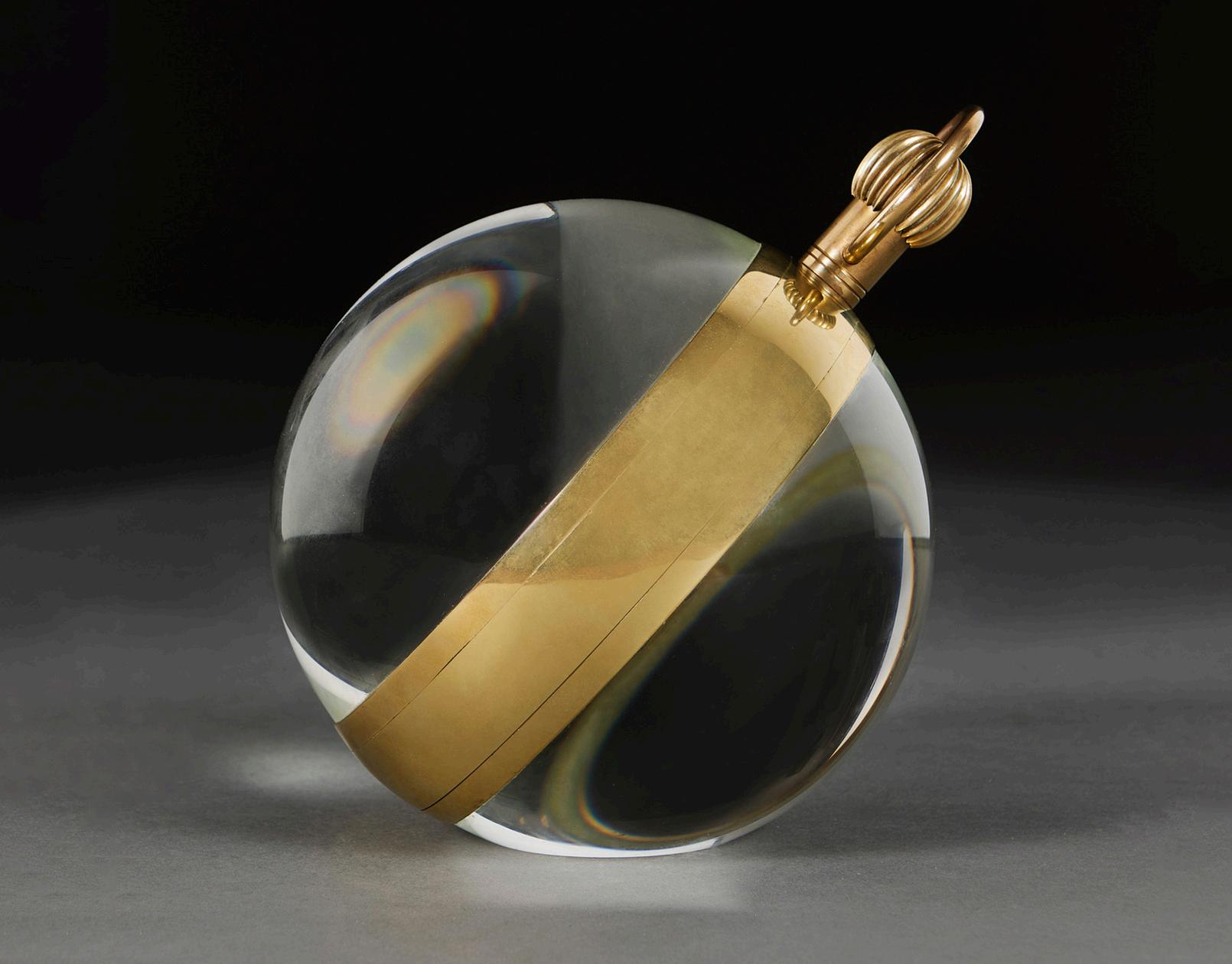 AN ENORMOUS EDWARDIAN BRASS MOUNTED GLASS WORLD TIME BALL DESK CLOCK