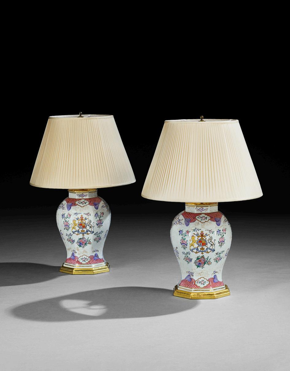 A PAIR OF REGENCY BALUSTER VASES ATTRIBUTED TO EDME SAMSON, MOUNTED AS LAMPS