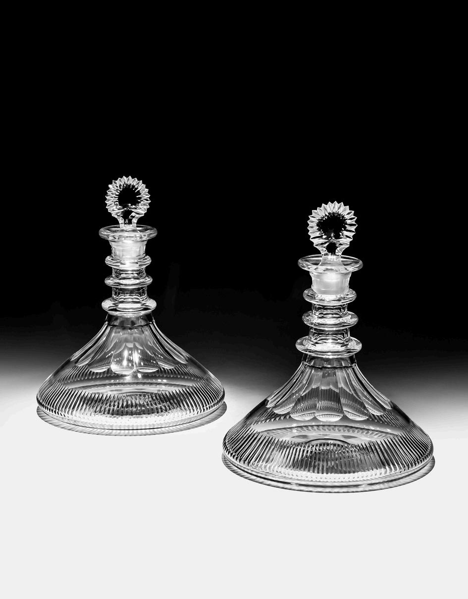 A PAIR OF SLICE AND FLUTE SHIPS DECANTERS