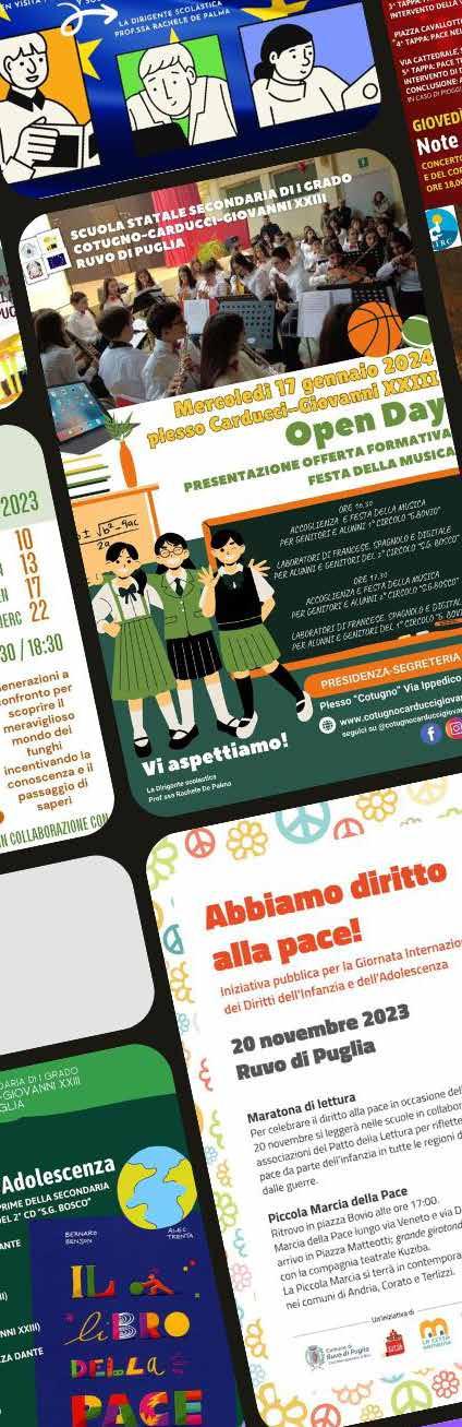 Il Collegio docenti, convocato il 16 maggio 2024, ha deliberato di avviare l’iter per intitolare il plesso bianco della “Cotugno” - i cui lavori di ristrutturazione, cominciati nell’estate in maggio 2021 sono in dirittura di arrivo - a don Tonino B ELLo, come proposto dalla nostra redazione lo scorso anno, in occasione del 30° anno della sua morte. Ed ha anche deliberato di intitolare l’aula di musica al Prof. N ICola Bu CCI, già docente di musica e animatore di quello spazio per tanti anni. Siamo grati alla Dirigente, al Collegio, al Consiglio di Istituto e all’amministrazione comunale, augurandoci che la proposta sia accolta e presto realizzata. Già pronto il pannello da apporre, realizzato dal Prof. Nico Ciccolella con gli alunni