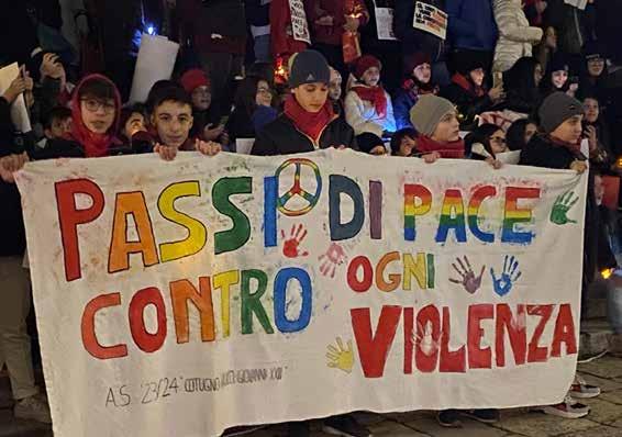 Ricordiamo con piacere il progetto tenutosi a Natale “Passi di pace contro ogni violenza” che ci è stato suggerito dalla scuola media Cotugno-Carducci-Giovanni XXIII e ha catturato l’attenzione di molti ragazzi e genitori che hanno partecipato attivamente preparando cartelloni con messaggi contro la guerra.
