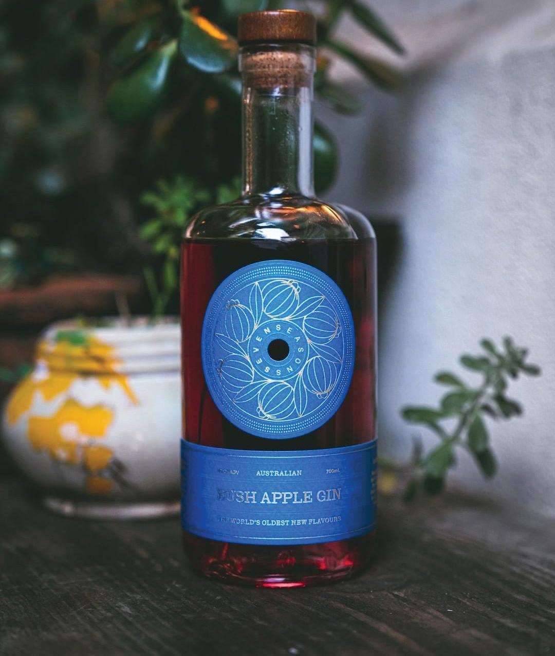 39 BUSH APPLE GIN SEVEN SEASON SPIRITS The addition of bush apples gives this gin floral, berry and eucalyptus flavours and their colour provides the blush hue for the gin. Boobialla, pepper berry, lemon myrtle and finger lime balance the requisite juniper with flavours of gently spiced orange blossom and jammy forest berries. 42% Alc/Vol apple-gin-700-ml/https://www.seven-seasons.com.au/product/bushBronzeSanFranciscoWorldSpiritsCompetition2022