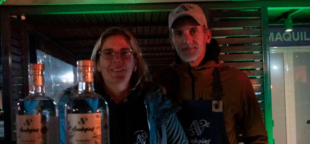 “Empecé tomando gin durante la pandemia, probando diferentes marcas con amigos, y luego se sumó Sebastián, mi esposo. Después de varias botellas, me decidí a hacer un curso, motivada por familiares y amigos. Hice un curso en la UTN online en 2021, compré un alambique y comencé a experimentar con diversas recetas, usando ingredientes como ananá, coco, anís, ají, tomillo y té. Sebastián me ayudaba a controlar los termómetros cuando yo no podía. Luego, empecé a regalar a mis amigos para que probaran, y más tarde vendí algunas botellas, pero solo a conocidos. Durante seis u ocho meses, experimenté con varias recetas hasta encontrar