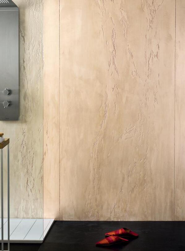 Var, pulberi de marmură de diferite dimensiuni și minerale naturale sunt constituenții produsului Segui il Tuo ISTINTO. Gioia este un finisaj acrilic.