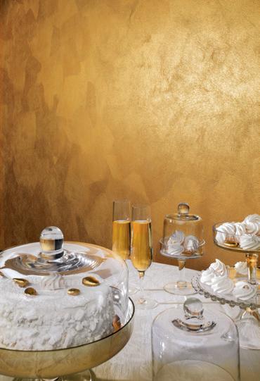 FRAMMENTI Es una resina acrílica transparente y brillante enriquecida con fragmentos metálicos de plata o de oro.