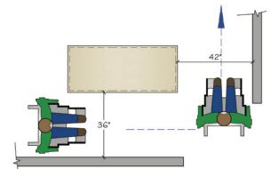 If two walkways are perpendicular to each other, one walkway should be at least 42” (1067 mm) wide.