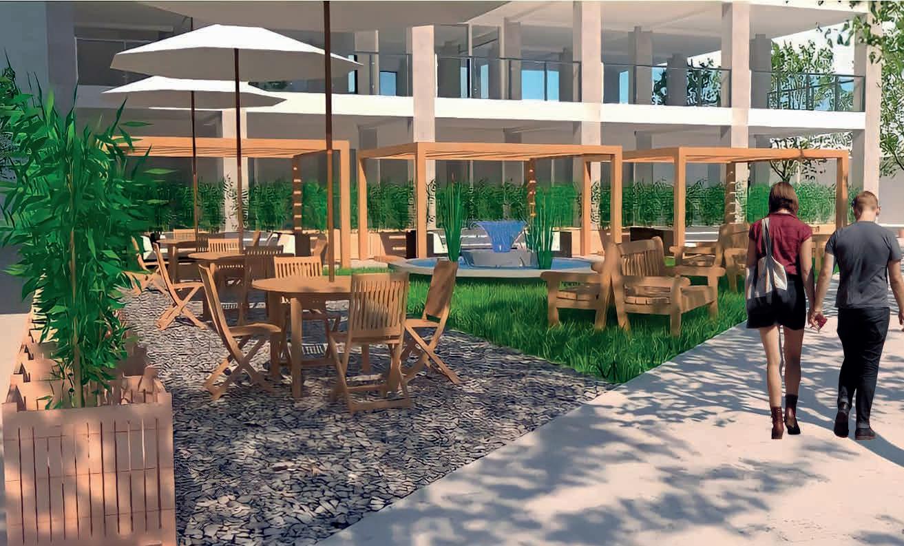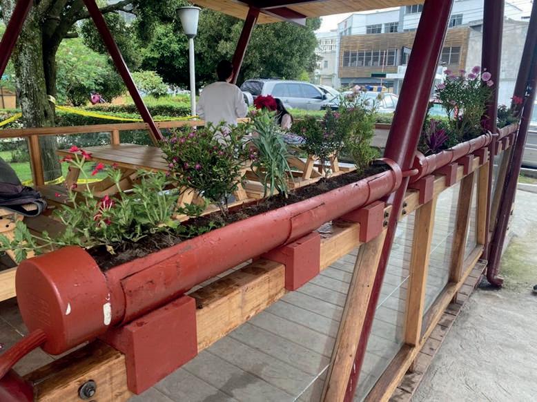 El lugar de estudio se ubica en en el parqueadero de la Facultad de arquitectura un espacio de ocio, para lo cual se realizó una investigación y análisis de las problemáticas en la cual se identificaron el desaprovechamiento del agua lluvia mediante la observación de cómo el agua fluye por el ducto desde el techo, además la falta de espacios verdes en la infraestructura del área es evidente, una vez obtenidas las problemáticas el objetivo del proyecto es generar un impacto positivo en la huella hídrica en el área de descanso de la facultad de arquitectura, mediante un prototipo de aprovechamiento del agua pluvial (jardín verde horizontal).