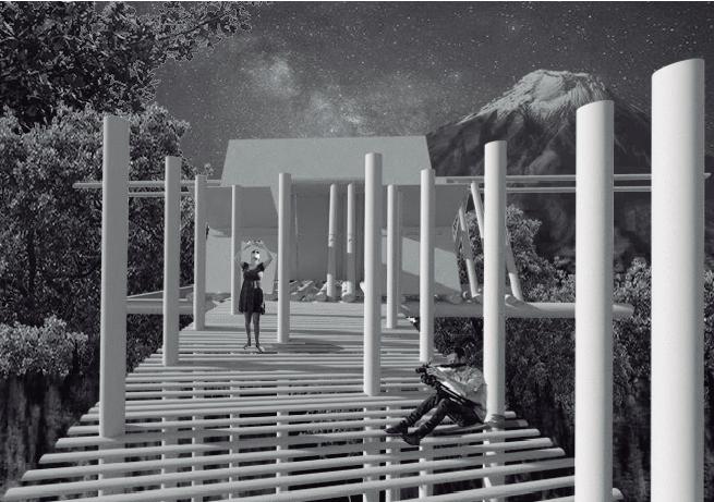 Espacio que permite la conexión e interacción de naturaleza y cosmos, donde la persona podrá experimentar distintas sensaciones y sentimientos según el espacio donde se encuentra.