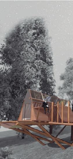 El diseño está pensado para que la persona pueda sentirse a gusto, tranquilo, mantenga privacidad y, lo más importante, la desconexión con la sociedad para que pueda conocerce más a sí misma, recordando cada momento mediante la conexión nocturna con la estrella, logrando ser parte del entorno que lo rodea.