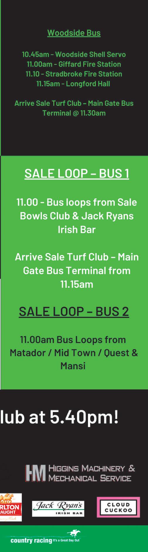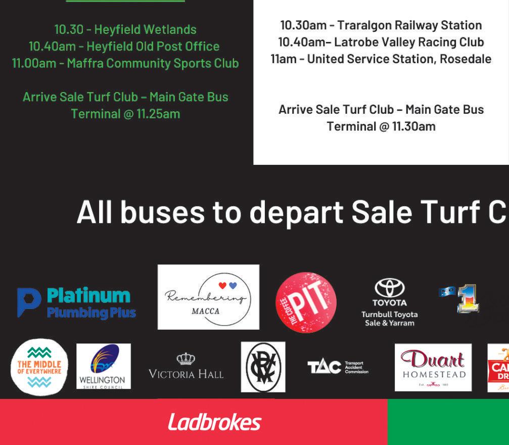 The Sale Turf Club heatwillbe conducted on Ladbrokes Sale Cup Day, with a$100,000 race making it afeature race on theday