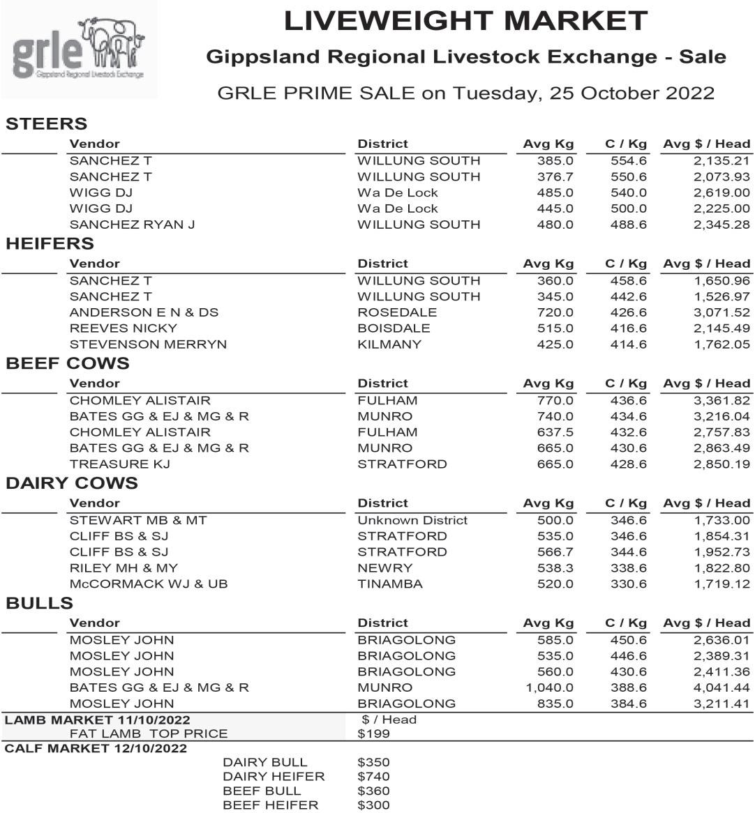 Second Grade: Allmatchesabandoned. ThirdGrade: Bundalaguah145 (B Bailey43, MMurphy 5/34) defBoisdale-Briagolong(DMurphy29, STilley5/34); Stratford3/205(dec)(DDevisser 120, NThomas 49) def Heyfield(RSmith47, MPendergast 4/30); Sale 9/93 (P Padula 32, LRowley2/12, KHahn2/12) d/w Rosedale Kilmany 2/17; Longford 95 (W Sutton29, BMcMaster20, L Adams5/26)d/w Nambrok(did notbat);MaffraBye Fourth Grade: Wurruk Windies 8/116(cc) (G Davies51, J Reid 4/18)def Rosedale-Kilmany (G Sebire49, LMassey 3/8);BundalaguahYaks 5/40 (J Hickey 14,E Patterson 2/4, BVan derVelden2/17) defWurrukToads (K Dehmel13, J Hickey 6/5);Collegians8/150 (B Hurley 44, VVb3/15) def Maffra 7/149(cc) (J Pataki 37*);Bundalaguah Bulls 4/126 (M Templeton54, OShaw2/5)def Stratford(RAllred50, J Sellings 2/11,M Templeton2/18);Heyfield def Sale Black by forfeit.