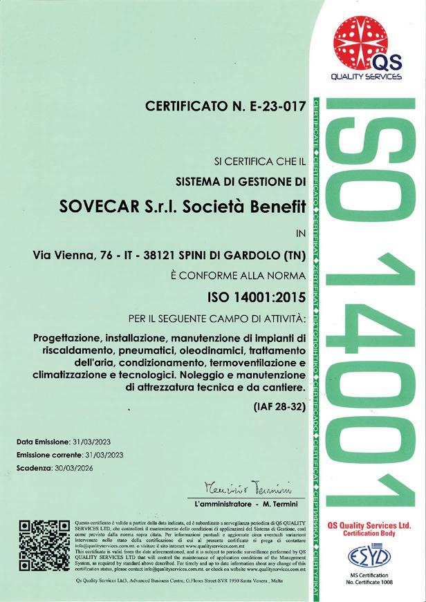 Sovecar srl da oltre 40 anni è sinonimo di esperienza e solidità. Con quasi 80 collaboratori altamente specializzati mette a disposizione le proprie competenze e capacità impiantistiche e di progettazione nel settore pubblico, privato, industriale, commerciale, residenziale. Sovecar srl è società benefit ed è certificata per la parità di genere secondo la uni/pdr 125:2022 ed è in possesso del certificato family audit.