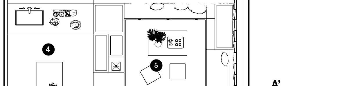 interior is arranged around a cruciform grid of steel columns. Kiley worked with the architects to create a seamless connection between the interior and the landscape, setting thehome atop a twenty-five foot wide platform on which sits a ten-foot wide terrazzo terrace. The terrace acts as a physical bridge between the interior of Saarinen’s rectilinear structure and the garden, providing a setting for outdoor gatherings and dining. Extending from the patio to the edge of the platform are bedsofivygroundcover,periodicallybrokenthroughbypaverssetingravel.Twoweepingbeeches are planted at the edge of the patio to the west of the house, adding height and movement to the space.
