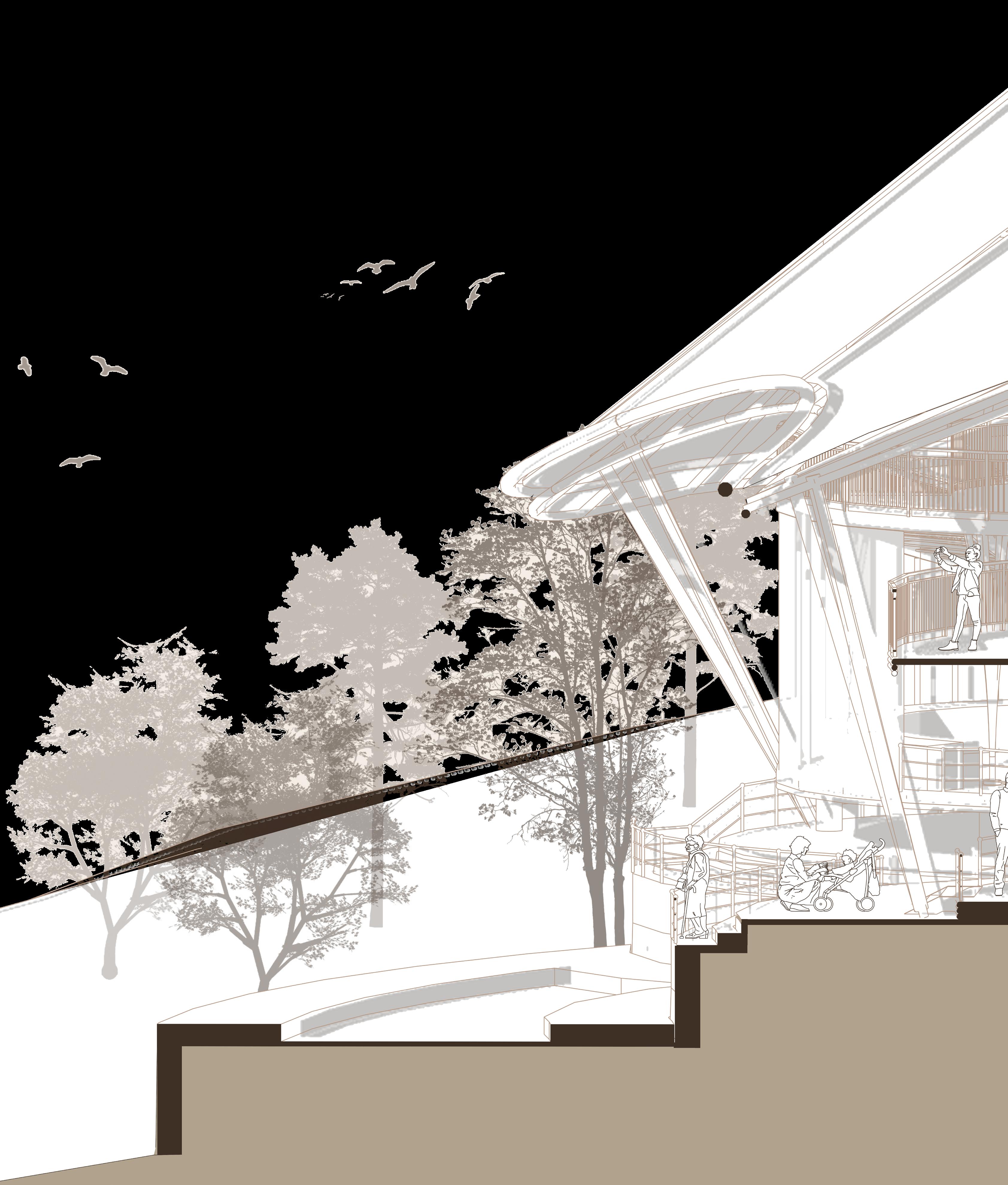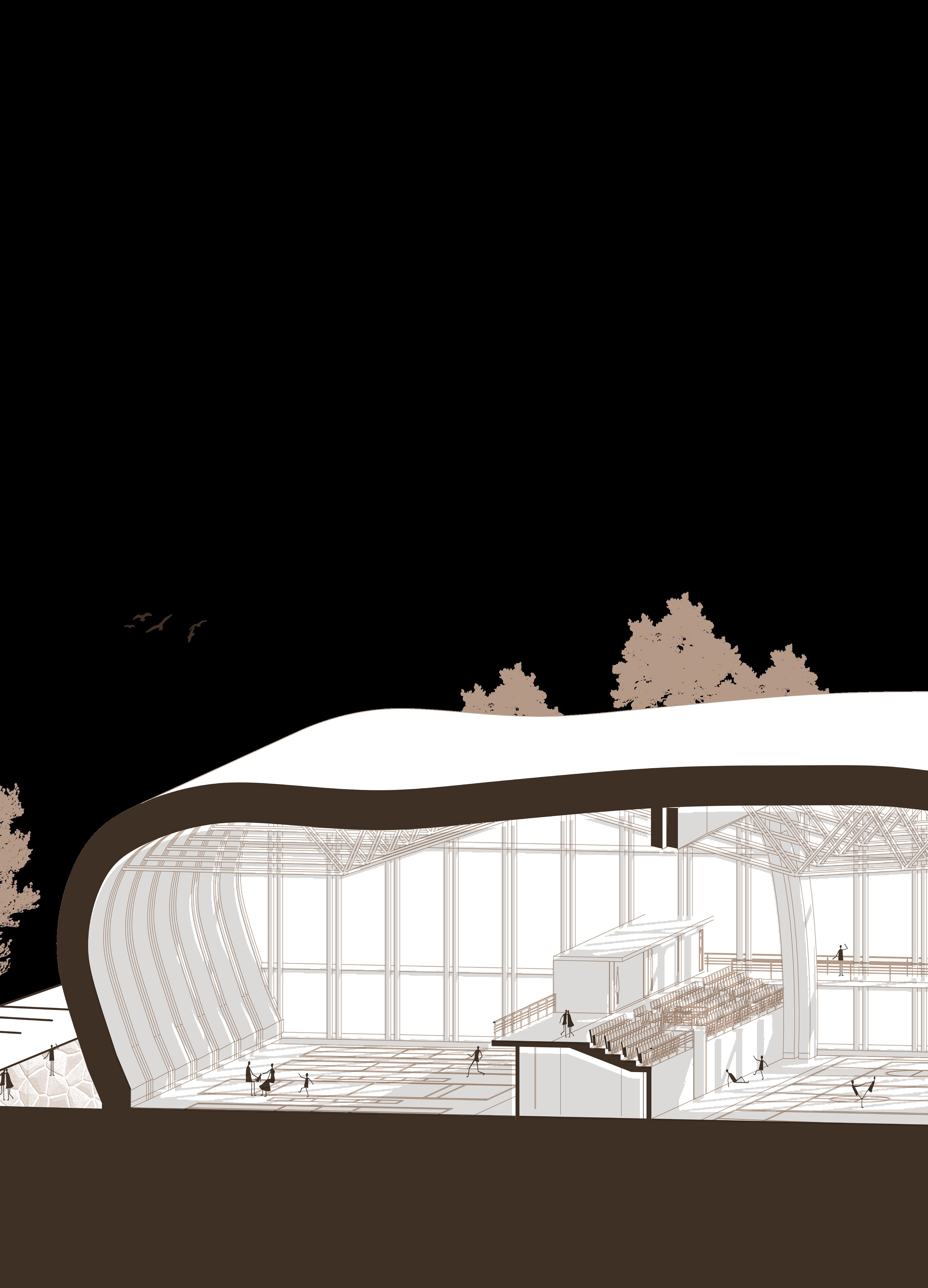 The mass timber design and abundant use of natural light represent a significant break from the traditional steel and concrete sports arena typology.