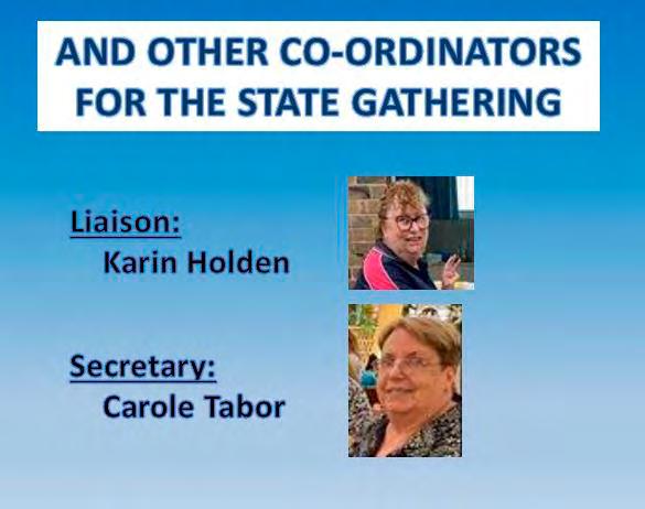 - Appreciation certificate to Wagga Wagga T G president Lisa Foley - thank you for being such fine hostesses for the Gathering !