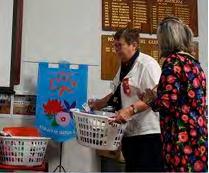 Collection stations: (beanies for Ukraine, donations for the Wagga Wagga Women’s Health Centre, badges for Sangam etc.)
