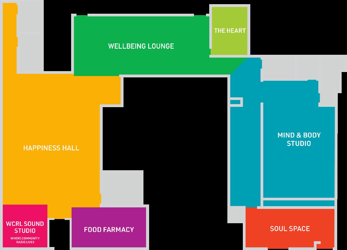 A warm, welcoming safe space featuring state-of-theart immersion for classes in movement, music, meditation, mindfulness and other healing modalities. Courses will be offered to all ages and at all ability levels for no cost: from babies to great-grandparents.