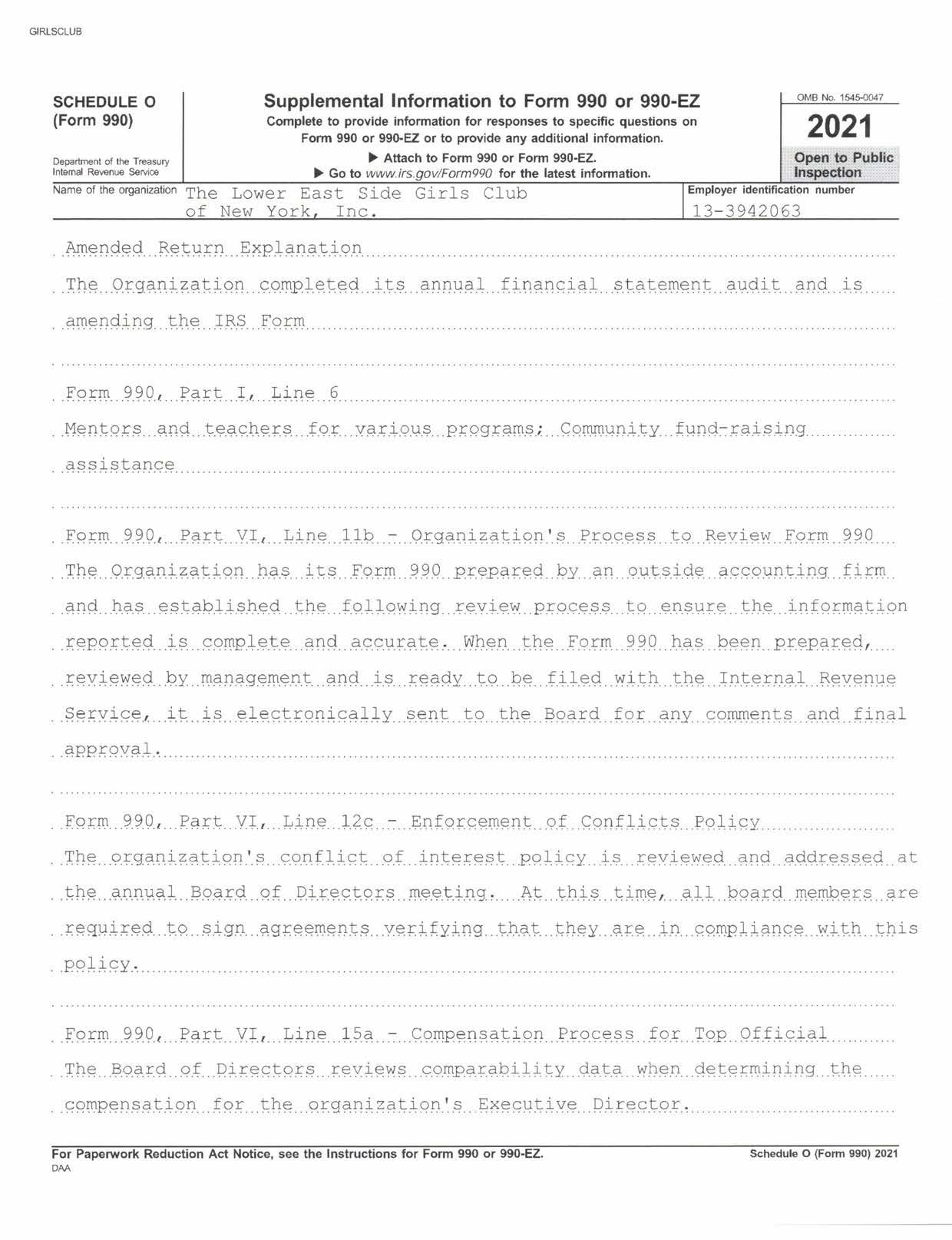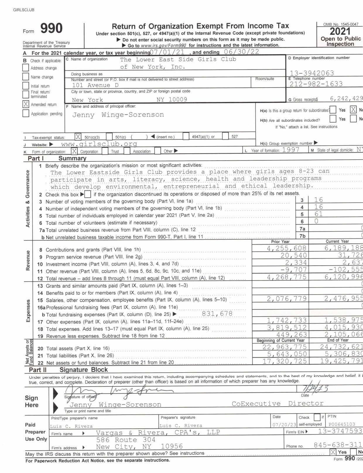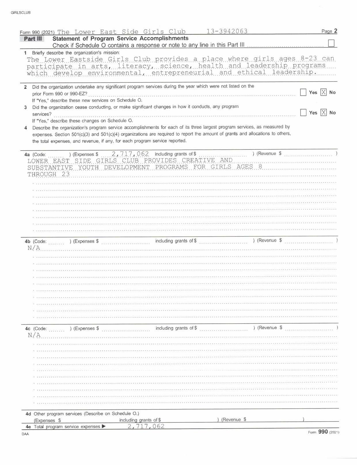 Lower Eastside Girls Club - FY2022 - 990 Tax Return by The Lower Eastside Girls Club of NY - Issuu