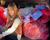 Girl Scouts from Troop 1659 with boxes of Boo-Bags ready for delivery.