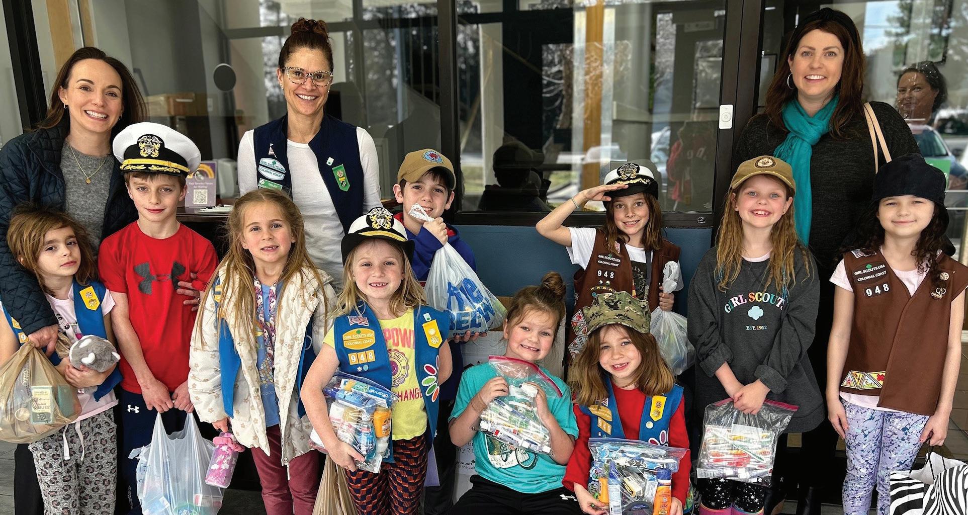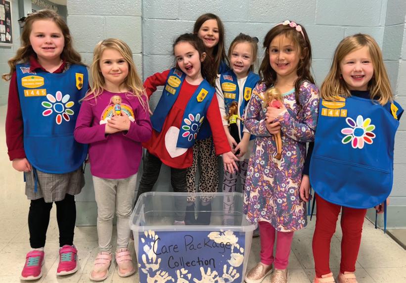 Girl Scout Daisies from Troop 1445 participated in Care Packages for the USO, a 2024 Council service project. They spent January and February collecting donations from family and friends and at their school, Walsingham Academy.