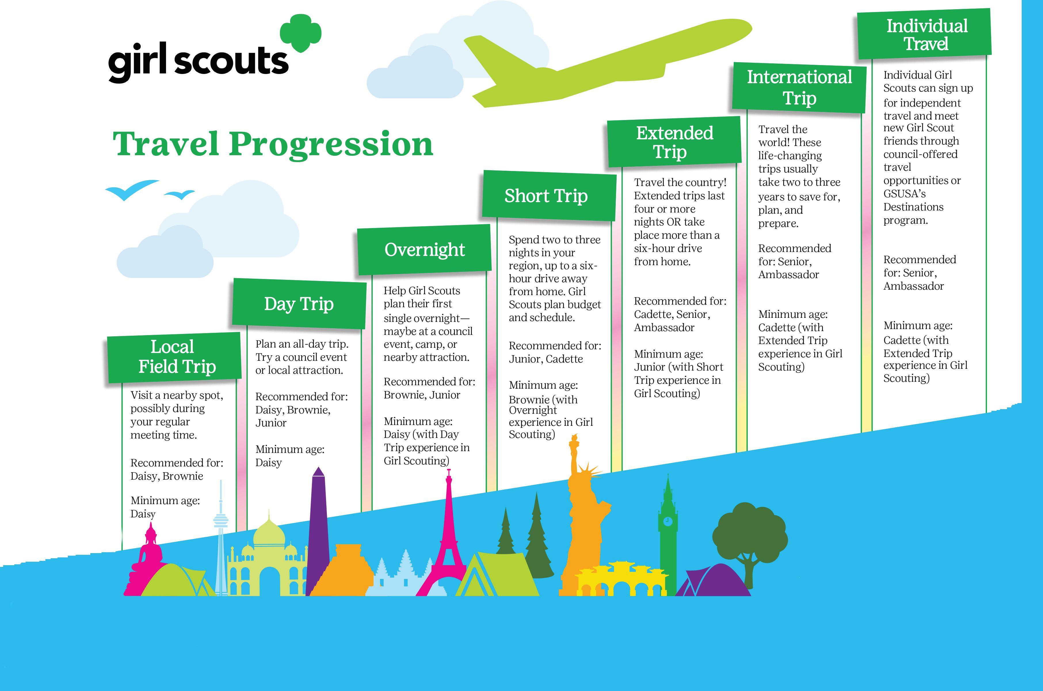 When moving up to the next step, consider each Girl Scout’s independence, ability to work well in groups, flexibility, and experience with cultures other than their own.
