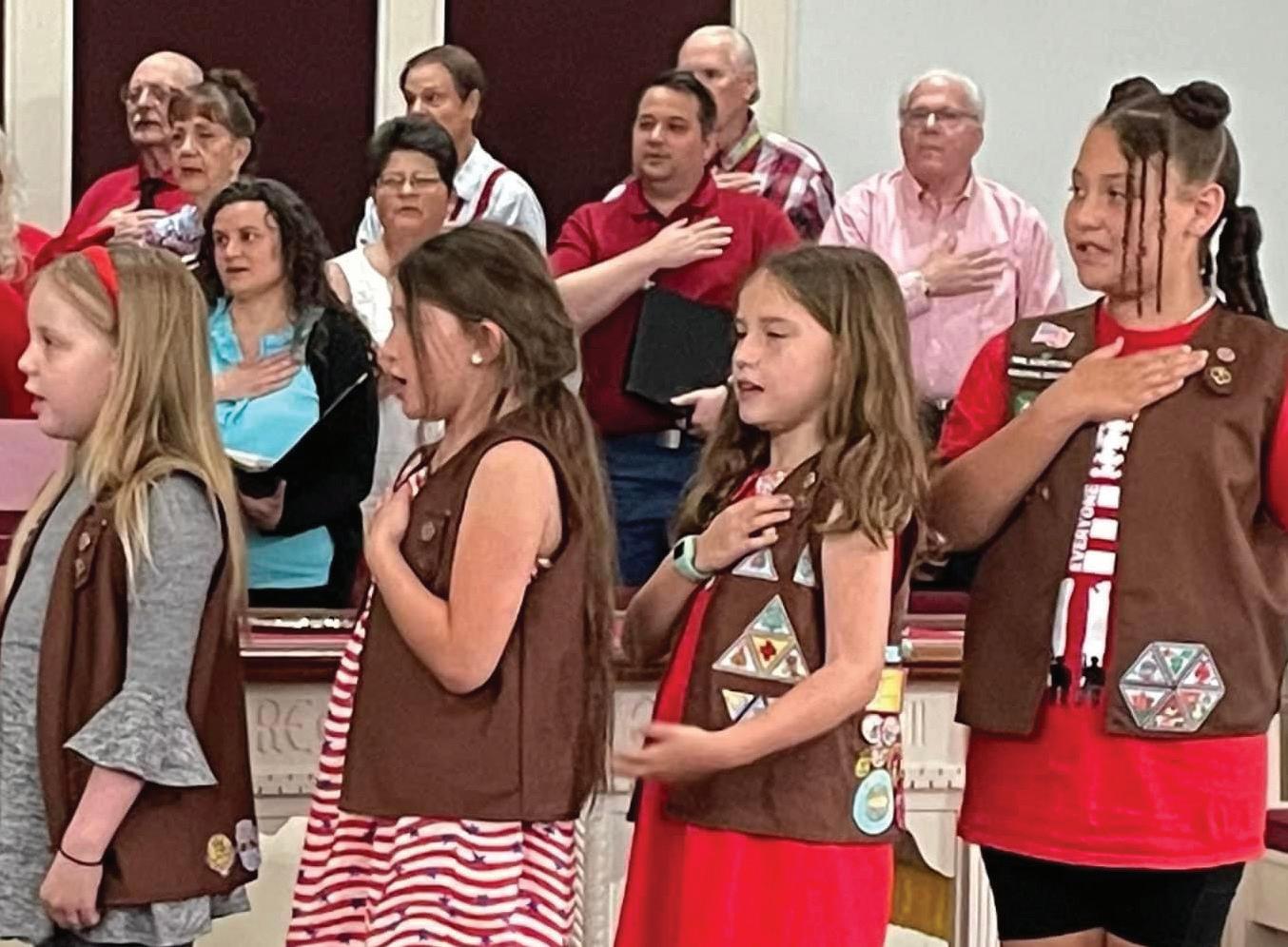 Girl Scout Brownies from Troop 1014 in Virginia Beach were invited by Providence Presbyterian Church to lead the community in the Pledge of Allegiance and sang the Star Spangled Banner during the Patriotic Spring Festival.