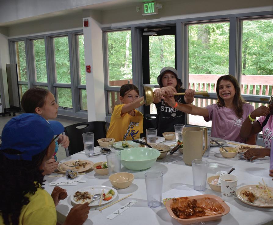There is nothing like activity and fresh air to make a camper HUNGRY! Camp meals and snacks are healthy and are foods kids like. During breakfast, a cereal bar and fruit are available in addition to the main meal. During lunch and dinner, we offer a fresh salad bar as a supplement to the main meal. Most meals are prepared by our kitchen staff and eaten in the dining hall. Campers have the opportunity to cook at least once with their unit (weather permitting). Most diets (gluten-free, diabetic, kosher, vegetarian, vegan, allergies, etc.) can be accommodated by contacting customercare@gsccc.org at least two weeks before camp session. We follow the American Heart Association and Diabetes Association nutritional guidelines.