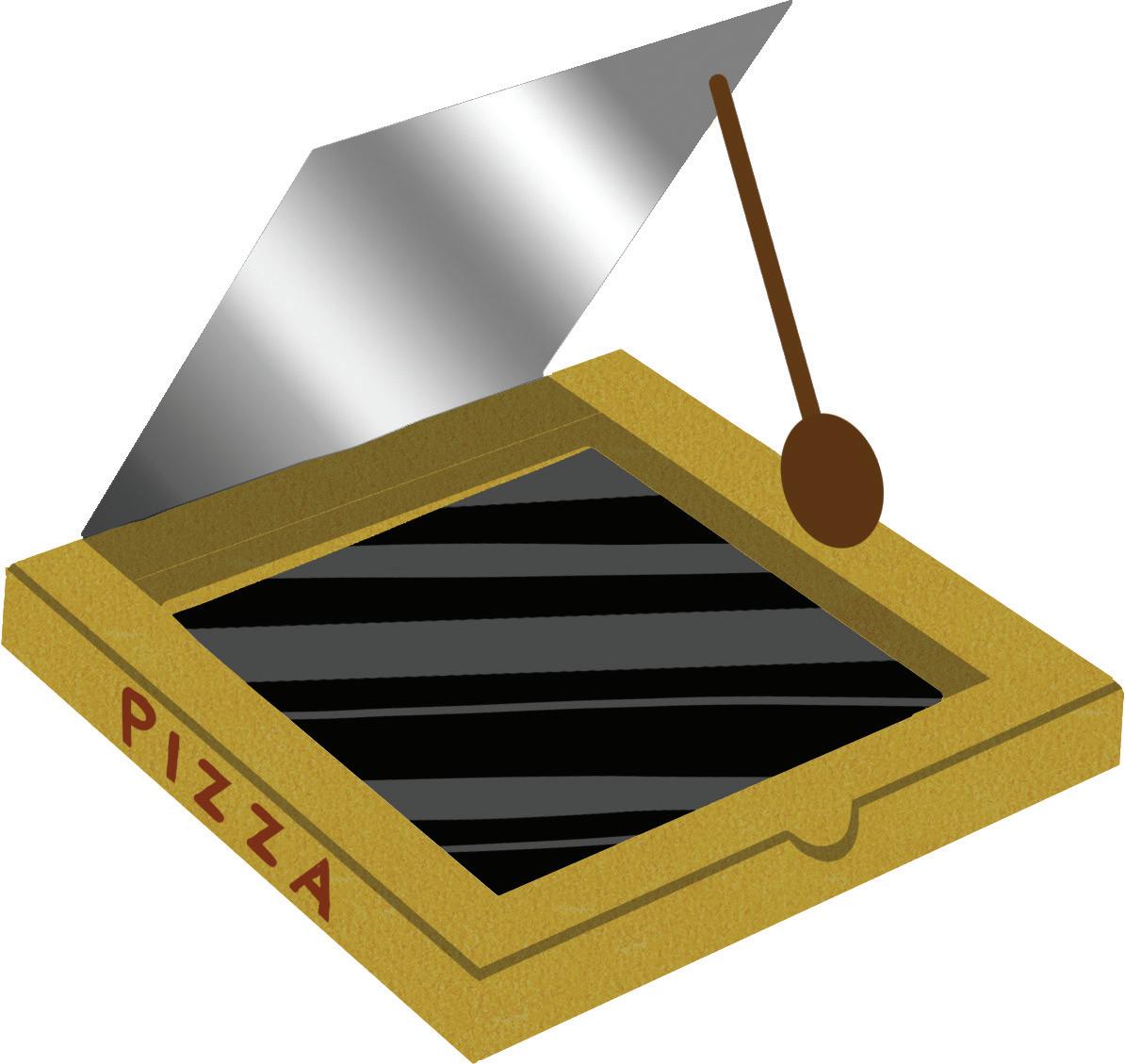 You’ll need a sunny day, a cardboard pizza box, plastic wrap, scissors, aluminum foil, clear tape, black construction paper, old newspapers, a wooden spoon, a plate smaller than your pizza box, tortilla chips, shredded cheese, and oven mitts or a towel.