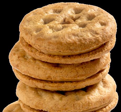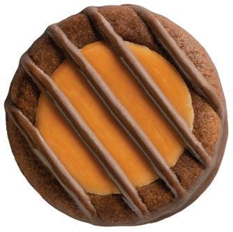 Indulgent brownieinspired cookies with caramel flavored crème and a hint of sea salt