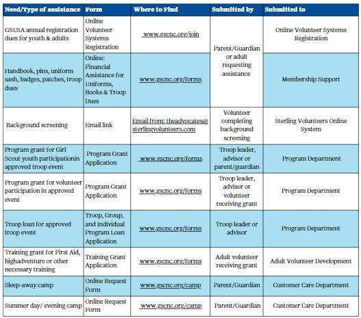 Covers membership and troop dues, girl supplies, camperships, and program fees. $500 supports a year of Girl Scouting. Financial Assistance