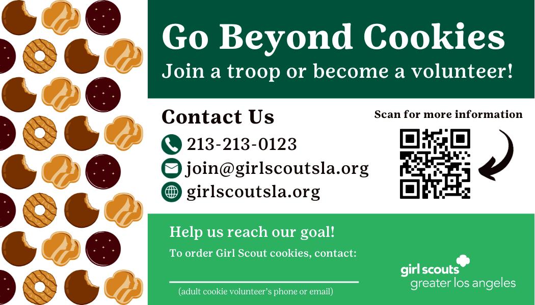 Cut out business cards and pass them out at your booth! Need more? Go to girlscoutsla.org and print on cardstock.