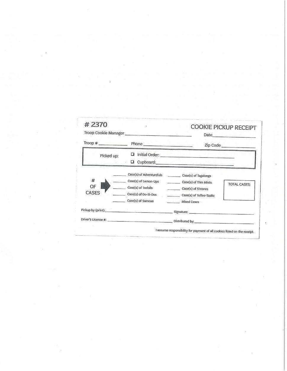 • Add to receiving Girl Scout repeating "assigning cookies instructions"