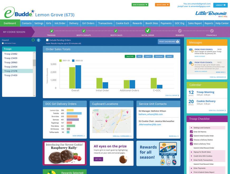 • Reviews and submits the initial cookie and rewards order for their assigned area