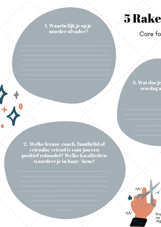Met onderstaande vragen krijg je een goed beeld van hoe het met jou gaat. Geef bij elke stelling aan 1 = helemaal niet waar, 5 = er tussen in, 10 = helemaal waar.