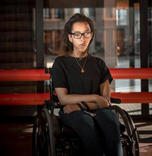 ‘Op het speciaal onderwijs waar ik vanaf mijn tiende zat, werd ik ook behandeld alsof ik achterlijk was, totdat ik er iets van zei. Ik vind eigenlijk dat speciaal onderwijs afgeschaft moet worden. Het speciaal onderwijs kan fijn zijn, maar ik wilde niet in dat gehandicaptenwereldje blijven, omdat het niet echt goed voor me was. Je blijft in een soort bubbel leven en je komt er niet uit. Ik studeer nu rechten op het ROC Amstelland. Ik wil misschien iets met mensenrechten doen, maar vooral eerst mijn diploma halen. Ik kom in aanmerking voor het versnelde traject, dus hopelijk lukt dat. Ook voor kinderen op het regulier onderwijs is het beter om zo vroeg mogelijk te leren omgaan met alle soorten mensen. Als een gehandicapt kind regulier onderwijs volgt, raken andere kinderen eraan gewend. Als die persoon dat aankan qua stof, waarom zou je dat dan niet doen?’