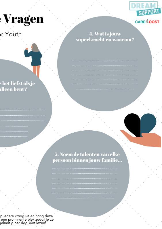 Het is fijn om je verhaal kwijt te kunnen bij iemand. Mijn vrienden zorgen niet elke dag voor iemand en die snappen het soms niet goed. Daarom vind ik het fijn jongeren in dezelfde situatie te ontmoeten; je merkt dat je een soort band hebt. Ik wil dat er meer aandacht komt voor kinderen die opgroeien met een zieke ouder, broer of zus. Het is fijn dat iemand af en toe vraagt hoe het thuis gaat, of vraagt hoe het nou met jou is. Dat helpt.”
